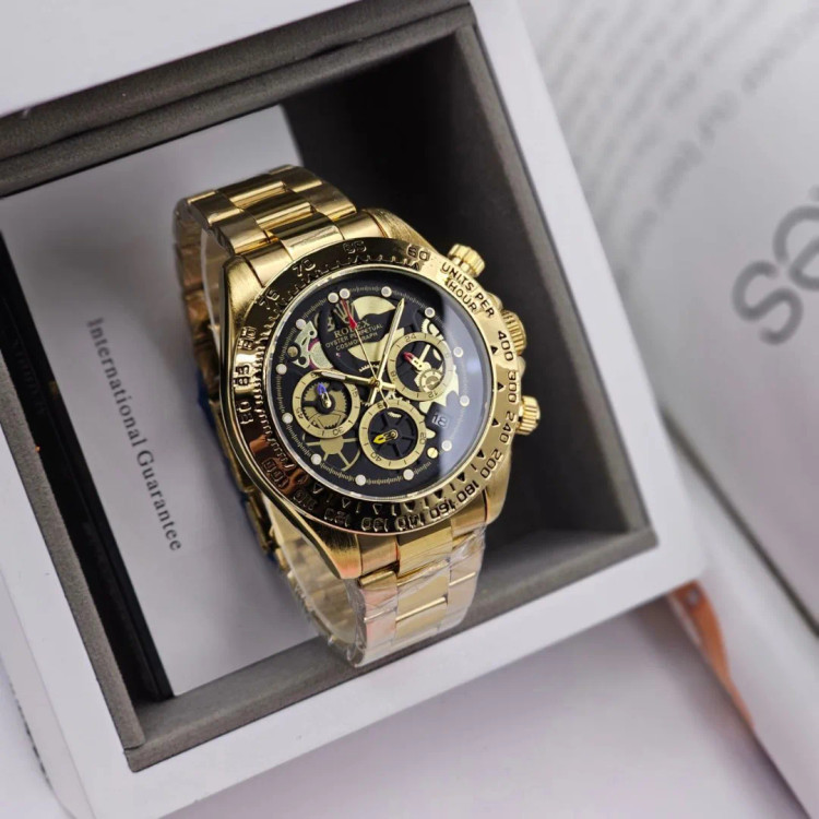 ساعت مردونه Rolex رولکس دیتونا کرنوگراف قفل رولکسی ضامن دار بنداستیل دارای روزشمار شیشه کریستال