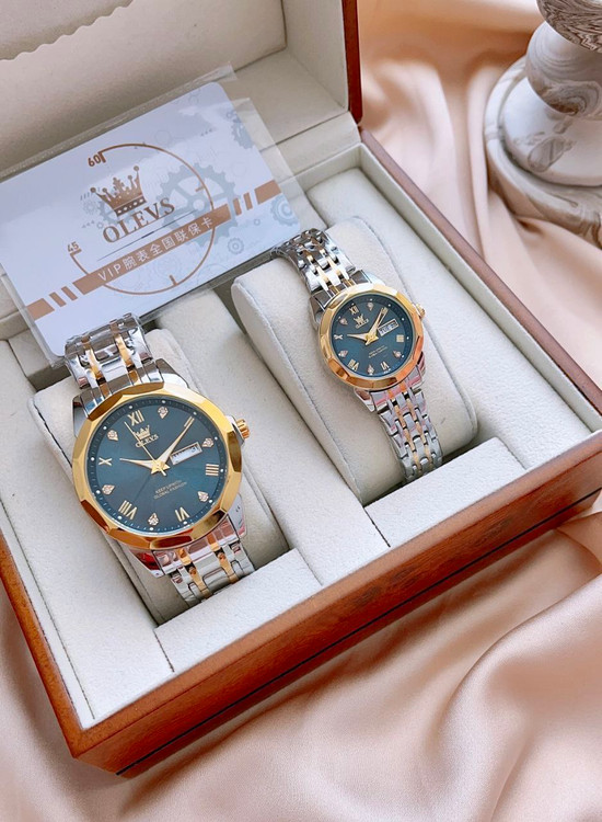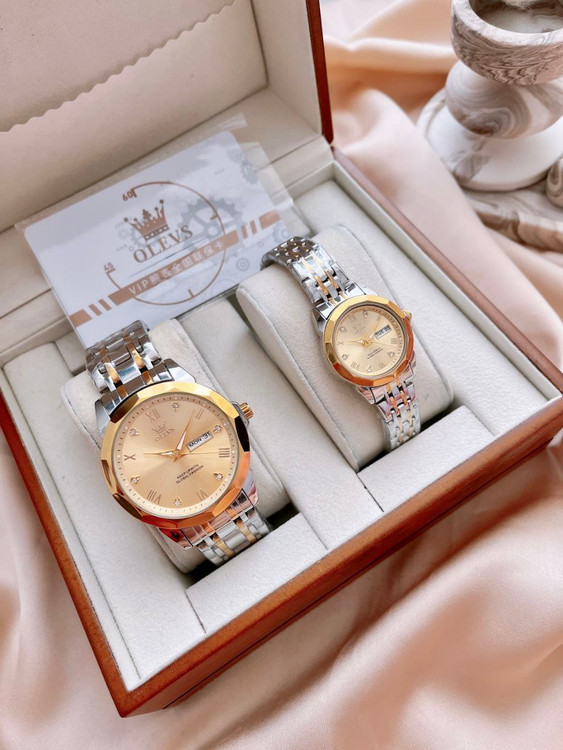 ساعت ست زنانه و‌مردانه برند الوز Olevs روز شمارطرح الماس-zw